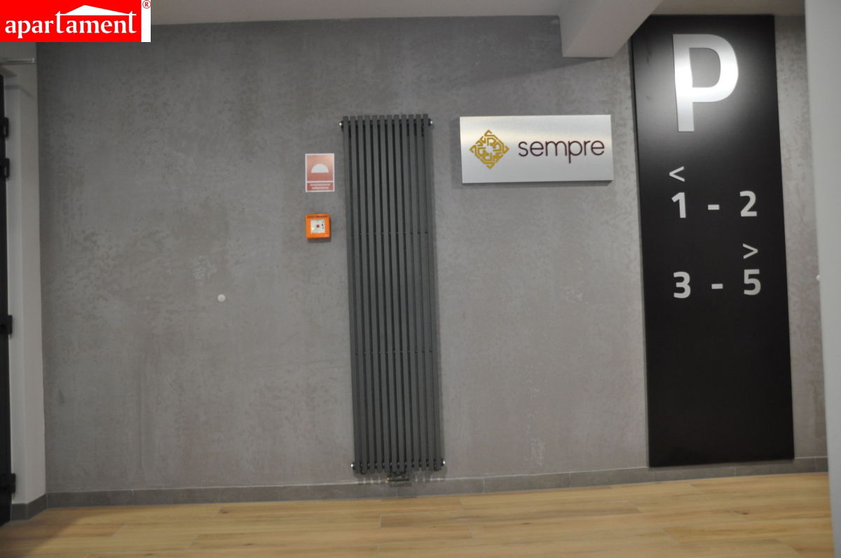 Inwestycja Sempre to 5 kondygnacyjny budynek wraz dwupoziomowym garażem podziemnym z miejscami parkingowymi i komórkami, do którego prowadzą cichobieżne windy.
